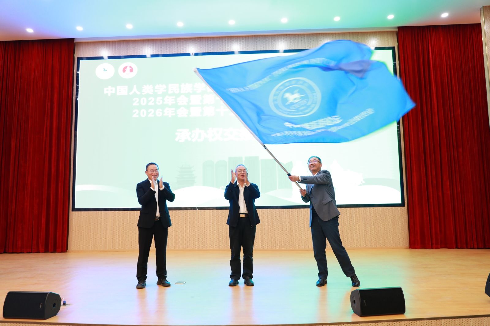 论坛闭幕式由桂林理工大学王佳果副教授主持,公布了对征集论文的评审结果,共10篇论文获十四届民族旅游论坛最佳论文,共20篇论文获十四届民族旅游论坛优秀论文。广州大学张河清教授对本次论坛进行了总结发言,他特别寄语年轻学者,要保持创新理念,持续关注并深入探索民族旅游这一充满魅力的研究领域。随后,顺利进行了会旗交接仪式。下届论坛承办单位遵义师范学院郗玉松教授发表了热情洋溢的讲话,他向所有与会专家学者表达了最诚挚的感谢和最崇高的敬意,并详细介绍了遵义及其学院深厚的文化底蕴及基本情况。他热情邀请专委会领导、专家及同行们下届论坛莅临指导,共谋发展。最后,中国人类学民族学研究会民族旅游专业委员会主任吴忠军教授宣布本次论坛圆满闭幕。