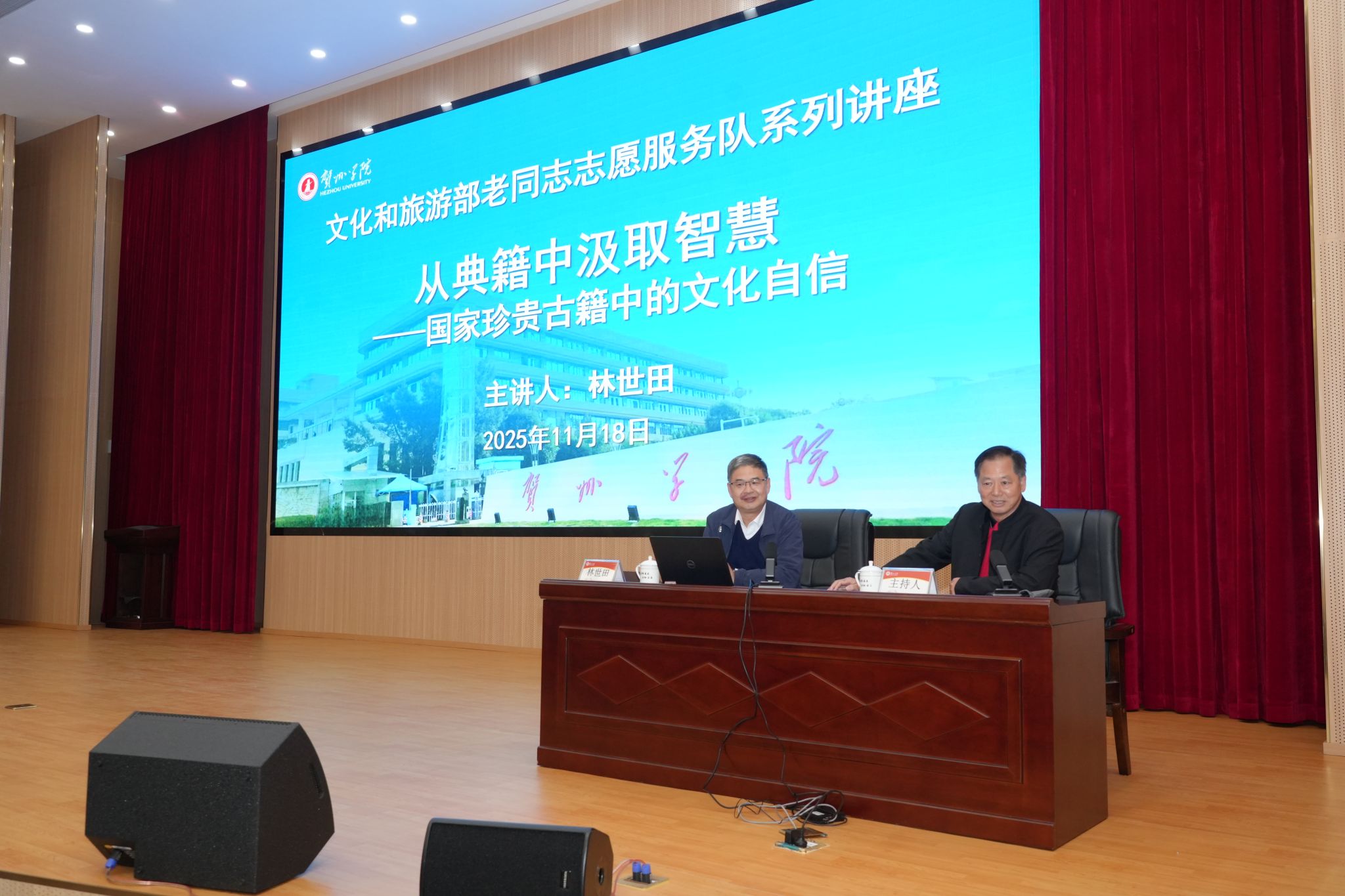 11月18日下午,文化和旅游部老同志志愿服务队成员,国家图书馆研究馆员、古籍保护领域资深专家林世田莅临我校,作题为“从典籍中汲取智慧:国家珍贵古籍中的文化自信”的专题讲座,带领听众进行了一场深入的文化寻根之旅。