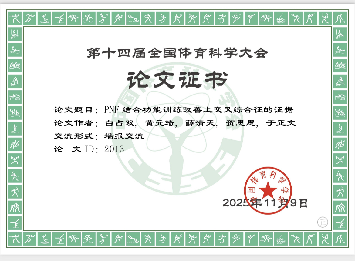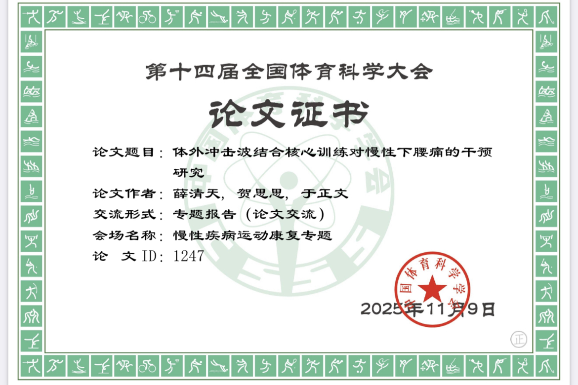 全国体育科学大会是由中国体育科学学会主办的国内最具权威性和影响力、最大规模和最高层次的综合性体育学术会议。我院运动康复专业薛清天和白占双两位教师的学术论文经过评审被大会录用。在近三届全国体育科学大会中,我院运动康复专业教师已累计有6篇学术论文被大会录用,包含2篇专题报告、4篇墙报交流。