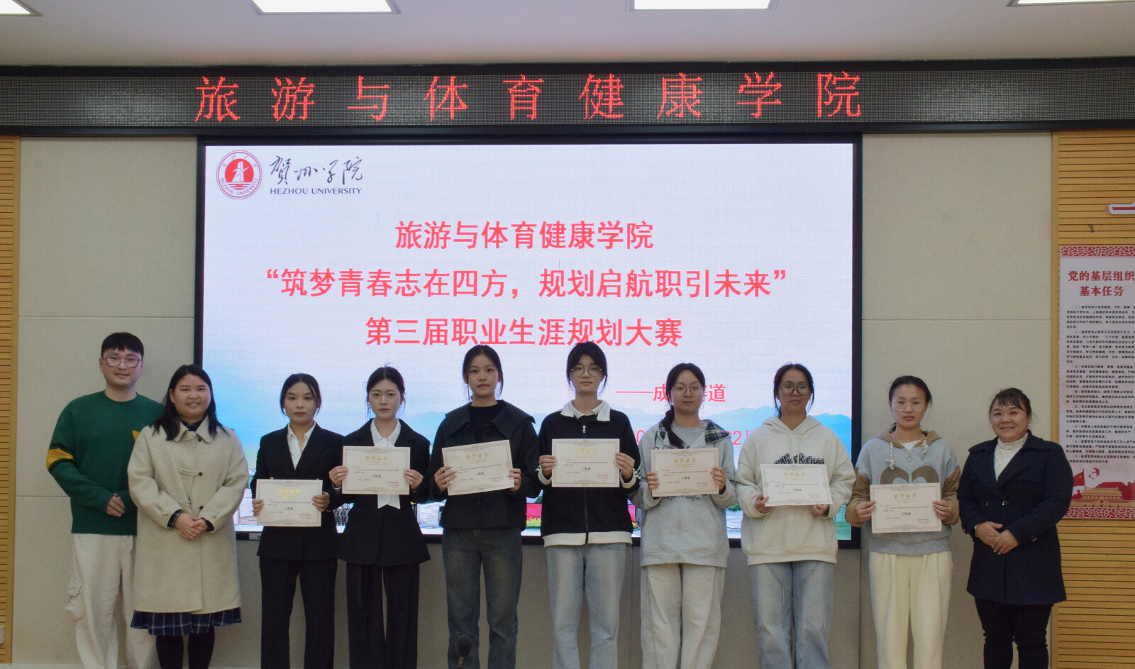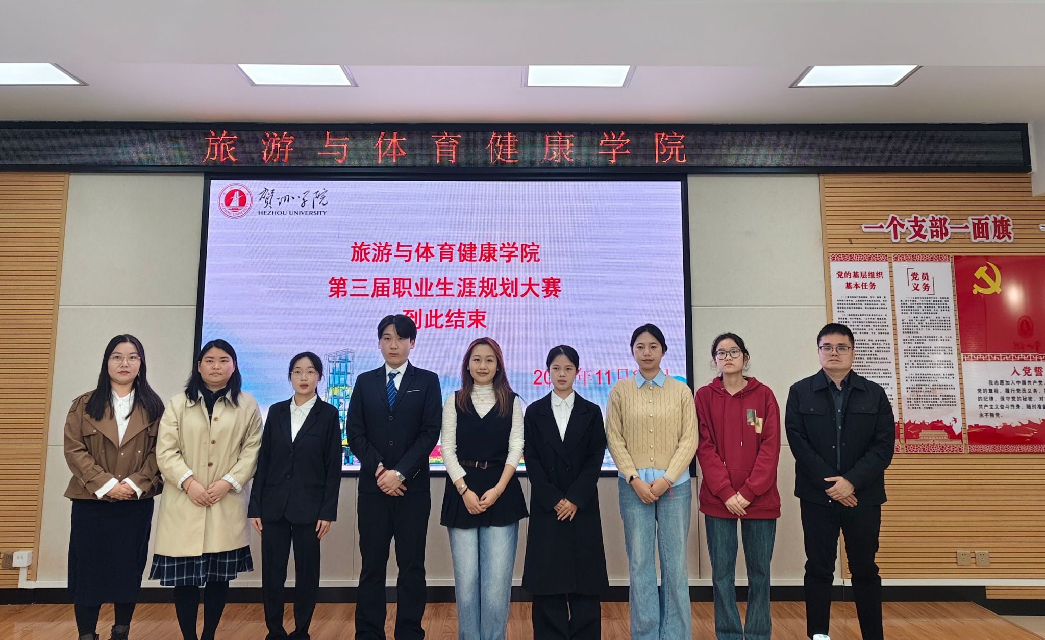为加强我院学生职业规划意识、提升就业核心竞争力,2025年11月22日,旅游与体育健康学院在逸夫楼329教室顺利举办第三届大学生职业生涯规划大赛。本次赛事邀请了蓝晓龙副书记、齐泊洋副院长,以及俸晓锦、宁永丽、黑云鹤老师担任评委,为选手提供专业指导。