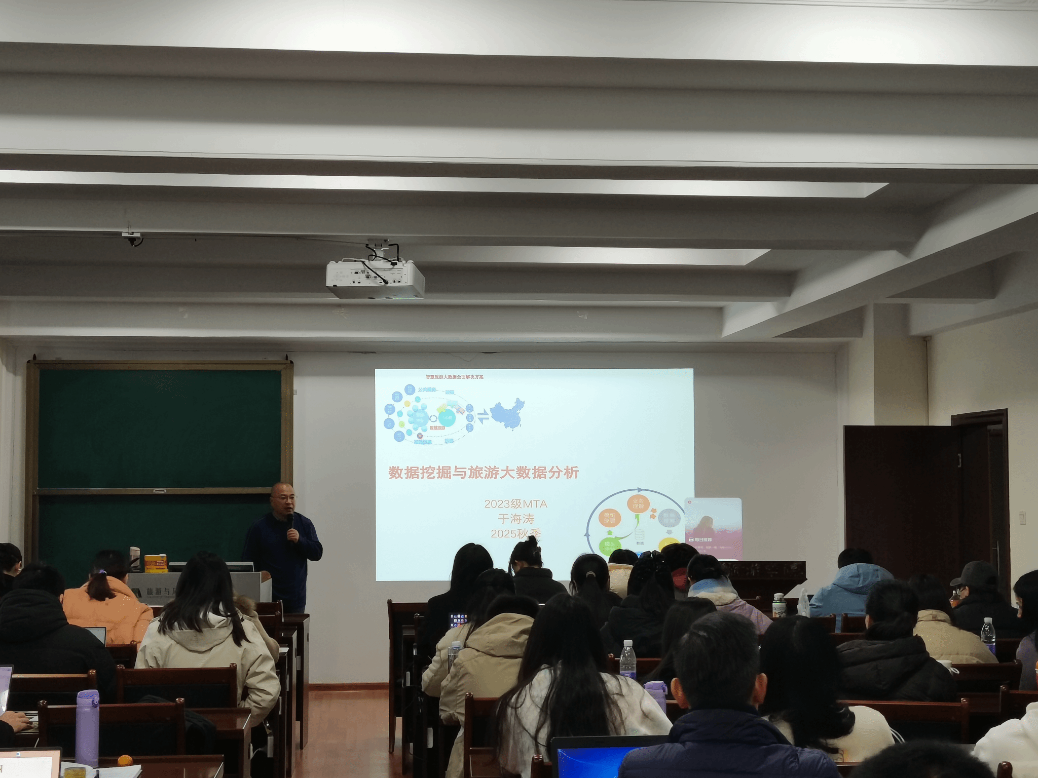 此次交流以“课堂观摩+经验分享”为主线,聆听桂林理工大学旅游与风景园林学院研究生《旅游产业发展前沿》《旅游大数据理论与应用》和《旅游产业发展前沿》等相关课程。教师深入课堂,系统学习MTA课程体系设计、案例教学组织、翻转课堂实施及课程思政融入等先进做法,双方围绕案例库共建、联合培养、实践基地共享等议题展开研讨。