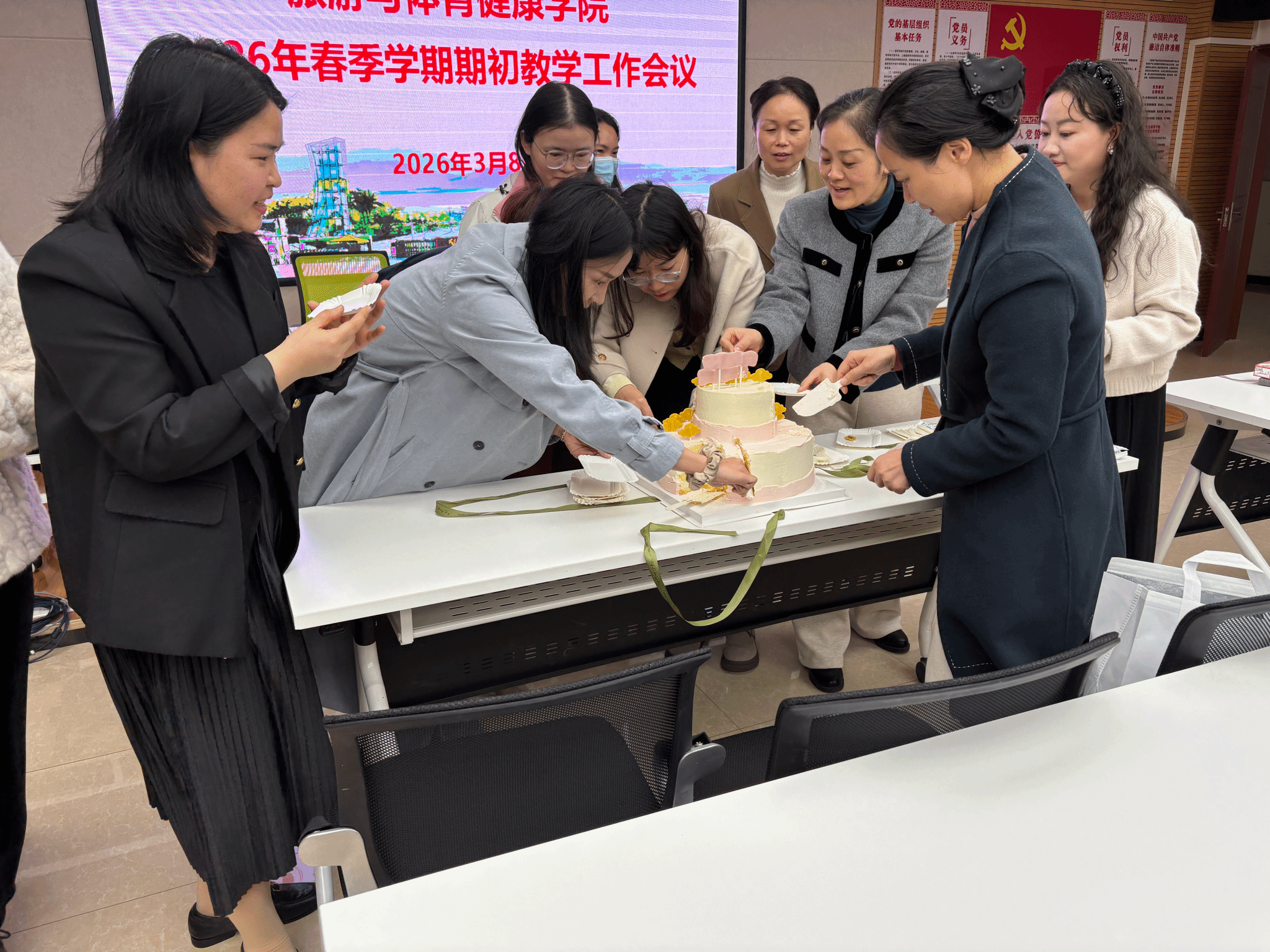 为传递暖心关怀,学院工会提前筹备,为女教职工准备了定制礼品与精致蛋糕,现场将暖心礼包逐一送到大家手中,让教职工们在轻松温馨的氛围中感受学院的悉心关爱,舒缓工作压力、增进彼此情谊。