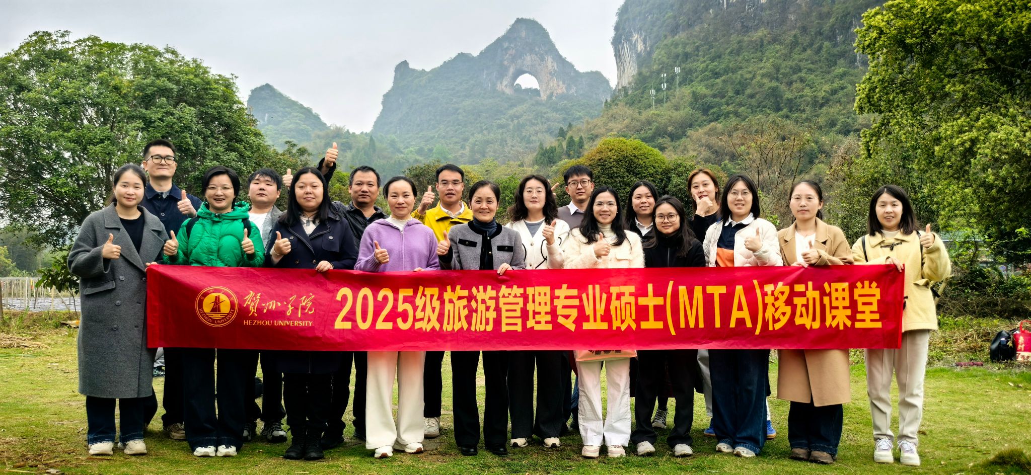 3月21日至22日,我校2025级旅游管理专业硕士研究生移动课堂走进桂林市阳朔县,将课堂理论与行业实践深度融合。在阳朔的山水间,同学们围绕2026年春季学期课程核心内容,结合阳朔文旅产业真实场景,切身感受旅游业态融合与高质量发展,在真实的产业场景中完成了一次“行走的课堂”。