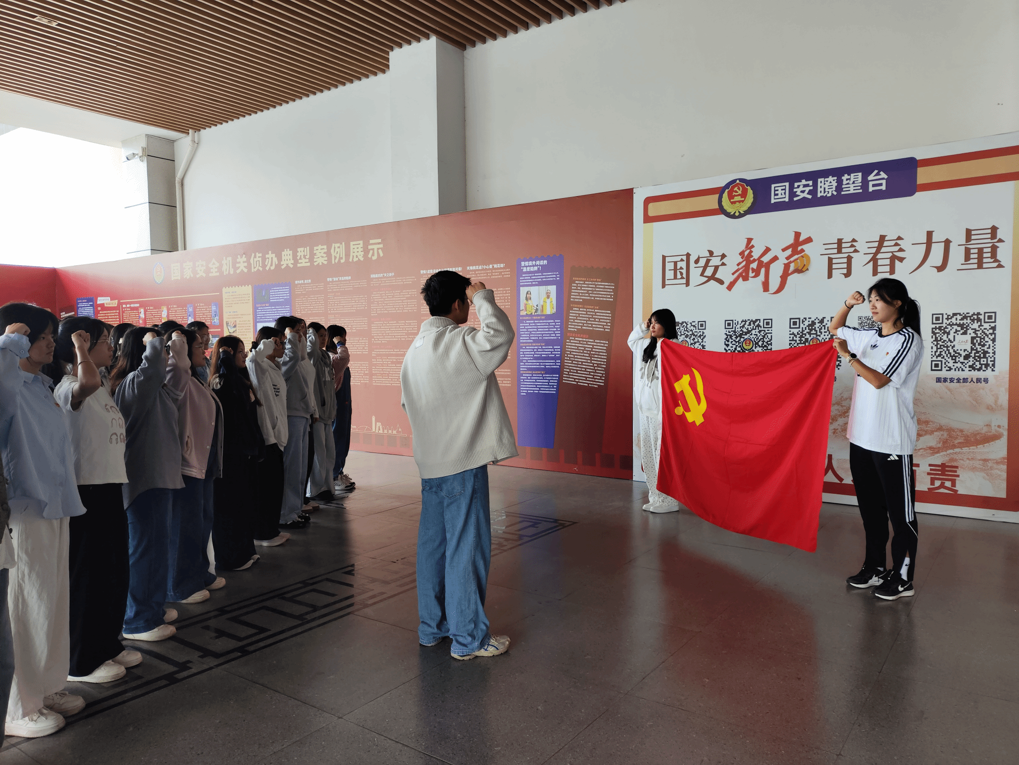 本次展览以“贯彻总体国家安全观,增强全民国家安全意识”为主题,通过图文展板系统阐释国家安全观的核心内涵与实践意义。学生一支部书记梁龙结合典型案例,深入解读《中华人民共和国保守国家秘密法》《中华人民共和国网络安全法》等法规,强调保密工作重要性,指导学生防范网络风险,为同学们上了一堂生动的国家安全教育课。活动中,全体党员面对党旗庄严宣誓,重温入党誓词,将忠诚信仰与安全责任深度融合,切实强化“国家安全、人人有责”的使命担当,推动主题教育成果转化为行动自觉。